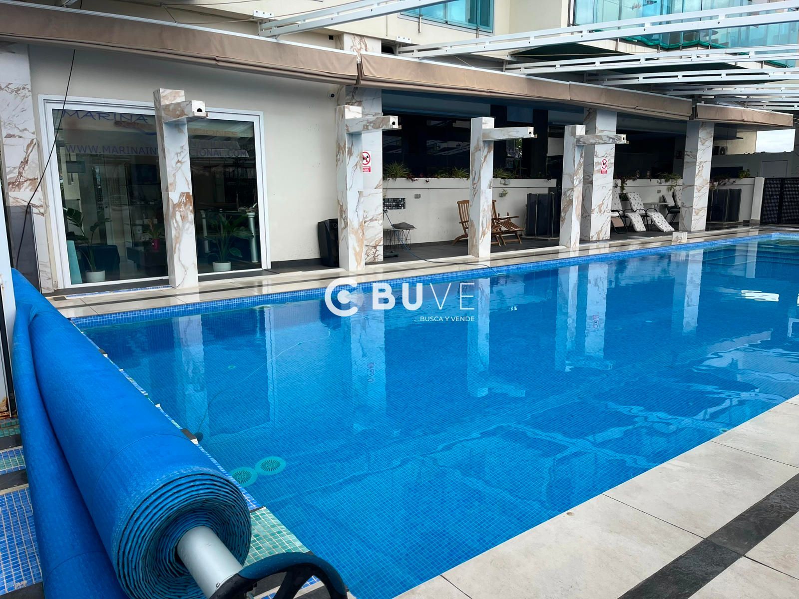 Posee piscina comunitaria muy amplia con hidromasaje y aparte un termalium interior, también con hidromasaje. Aparatos de Gym. Plaza de Garaje y trastero.